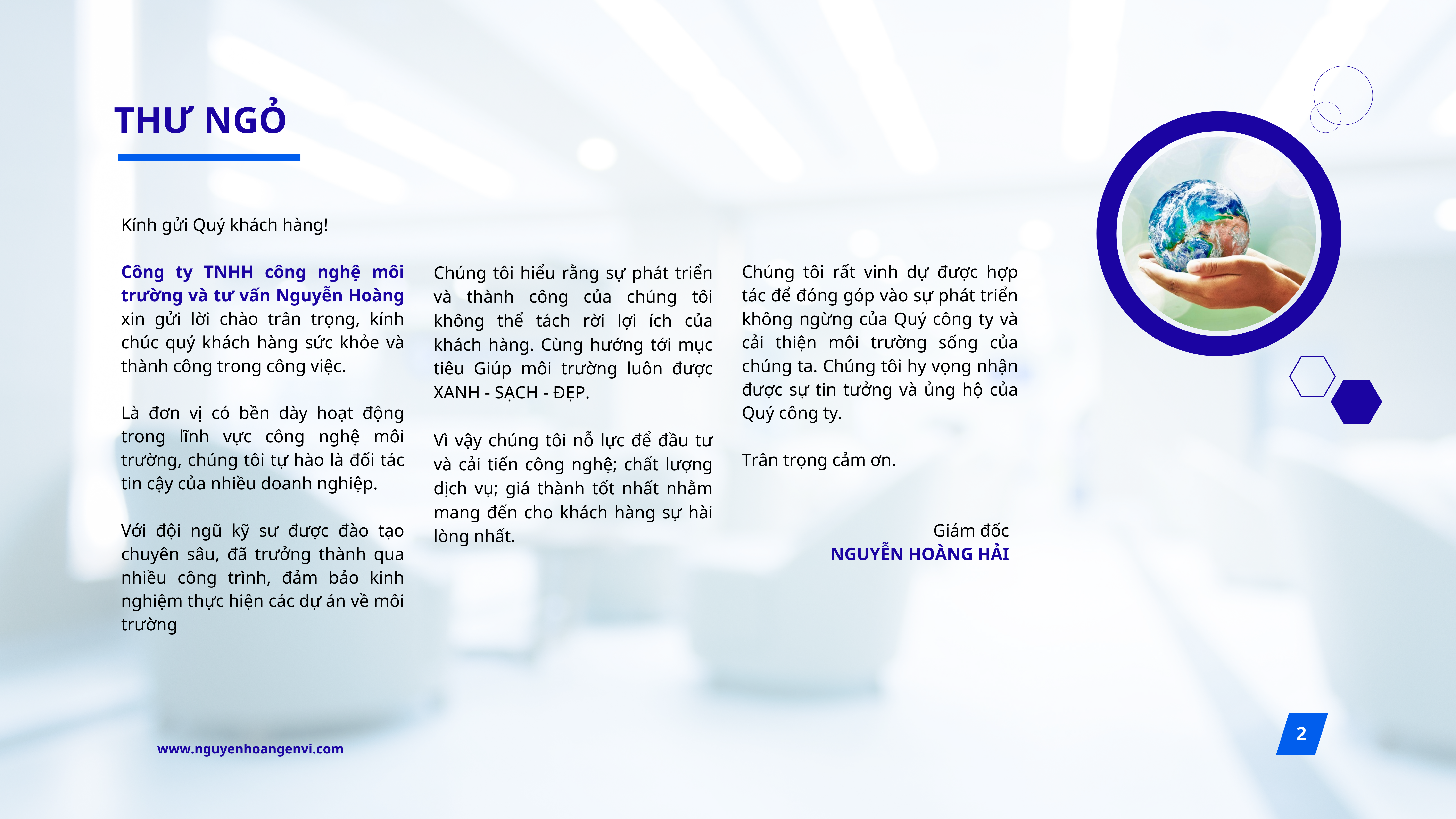 Nguyễn Hoàng Envi trân trọng cơ hội được hợp tác và đồng hành cùng Quý doanh nghiệp trong hành trình phát triển bền vững và bảo vệ môi trường.